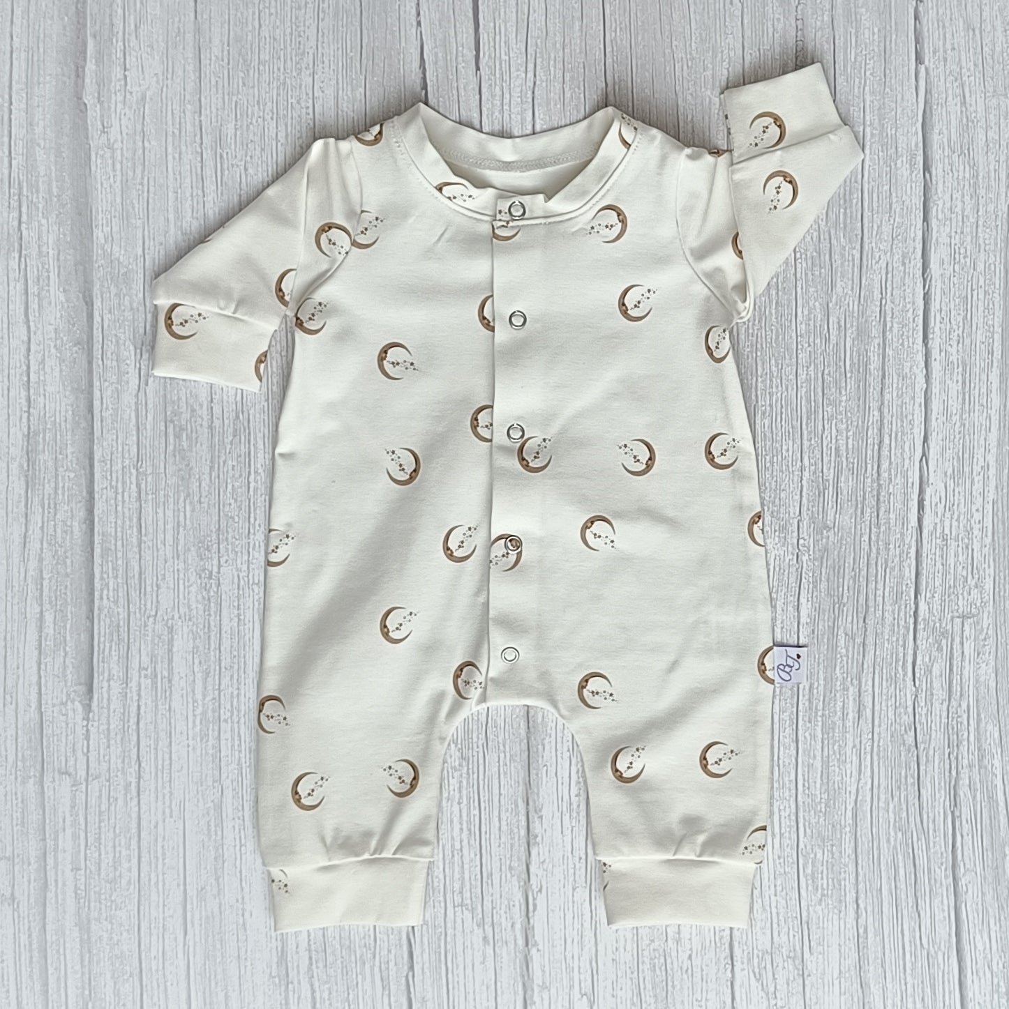 Het boxpakje Moon is een droom van zachtheid voor jouw kleintje. Gemaakt van hoogwaardige tricot (92% katoen, 8% elastan) sluit het soepel aan, ademt het goed en voelt het heerlijk comfortabel aan op de gevoelige babyhuid. Dankzij de handige drukknopen aan de voorzijde trek je het pakje in een handomdraai aan en uit – ideaal tijdens de vaak hectische verschoningsmomentjes. De digitale maanprint geeft dit boxpakje een magische uitstraling, waardoor jouw baby straalt in stijl én comfort. Bovendien blijft de stof mooi, zelfs na vele wasbeurten. Veiligheid staat voorop: dit boxpakje is STANDARD 100 by OEKO-TEX® gecertificeerd en dus volledig huidvriendelijk.